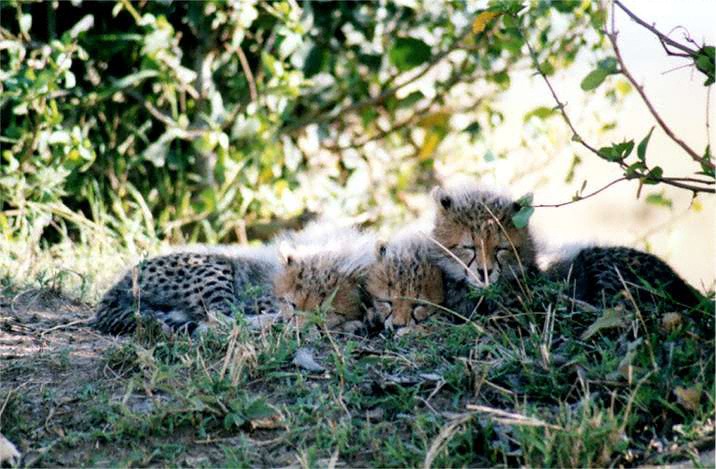 03年9月4日 マサイ・マラ。(61.4KB 711×477) 子どもたちはまだ背中に綿毛が残る大きさ。 柔らかい日差しの中でおねむ状態。 |
