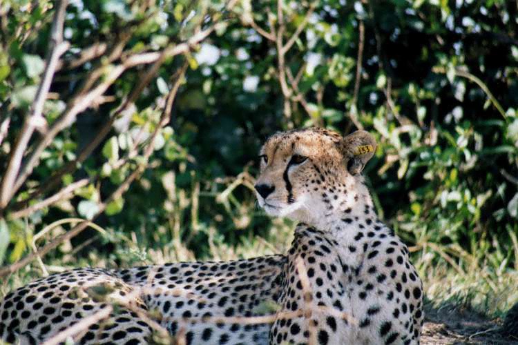 03年9月4日 マサイ・マラ。(61.2KB 750×500) このお母さんチータは耳に認識票を付けていた。 チータも数が減っている動物の一つ。 この美しい動物を、いつまでもアフリカの草原で見かけることができますように。 |