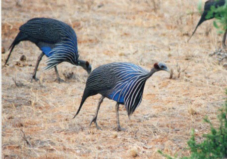 96年6月7日 サンブル。 (49.0KB 458×322) サンブルには2種類のホロホロ鳥がいるが、これは美しいほう。 襟巻きが付いてて綺麗。 美味しいそうなんですが、食べたことがありません。 |